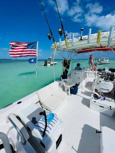 Hop aboard our 26' power catamarans with twin engines, and our licensed Captains will take your group out for a day at the Islamorada Sandbar.